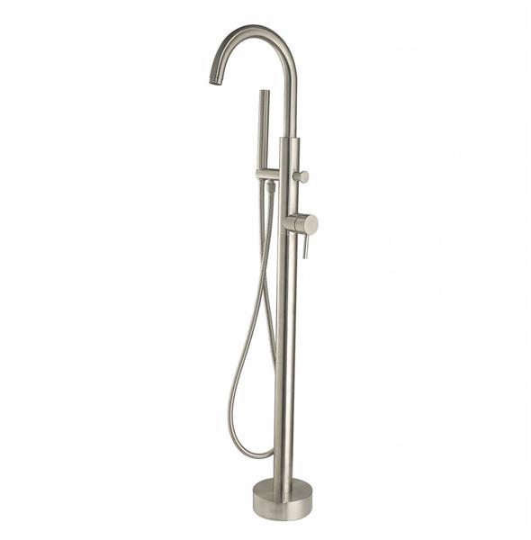 Vrijstaande RVS badmengkraan met handdouche in houder. Ideaal in combinatie met een vrijstaand bad.